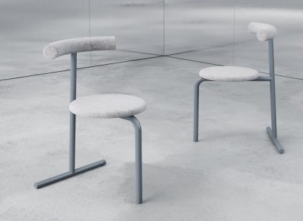 The Oitoproducts Eater Upholstered Side Chair is a minimalist masterpiece designed by Ivan Voitovych. Crafted from powder-coated steel, this chair features a