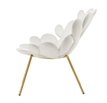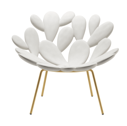 The Filicudi Armchair Brass by Qeeboo, designed by Marcantonio, brings a touch of Mediterranean charm to your living spaces. Inspired