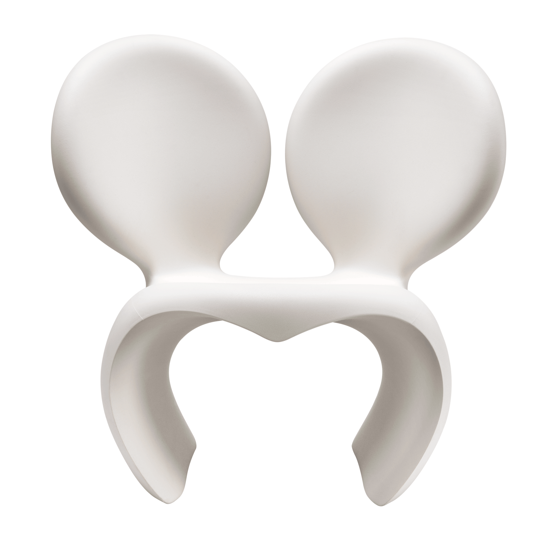 The Don’t F**k With The Mouse Armchair, designed by Ron Arad in 1988, stands as one of his most iconic creations. Originally a limited-edition piece, it has undergone various transformations over the years.