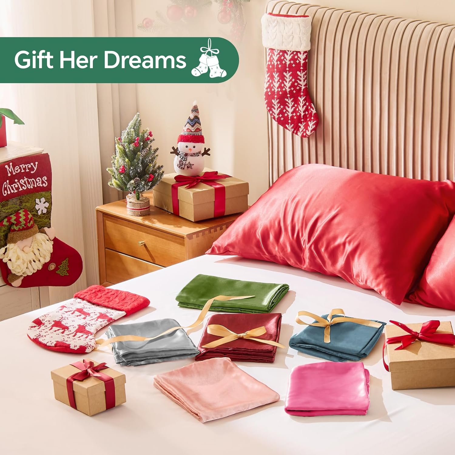 Satin Pillowcase for Hair and Skin, Super Soft and Cooling Similar to Silk Pillow Cases 2 Pack with Envelope Closure, Gift for Women Men(20″x26″ Standard Size, Coral)